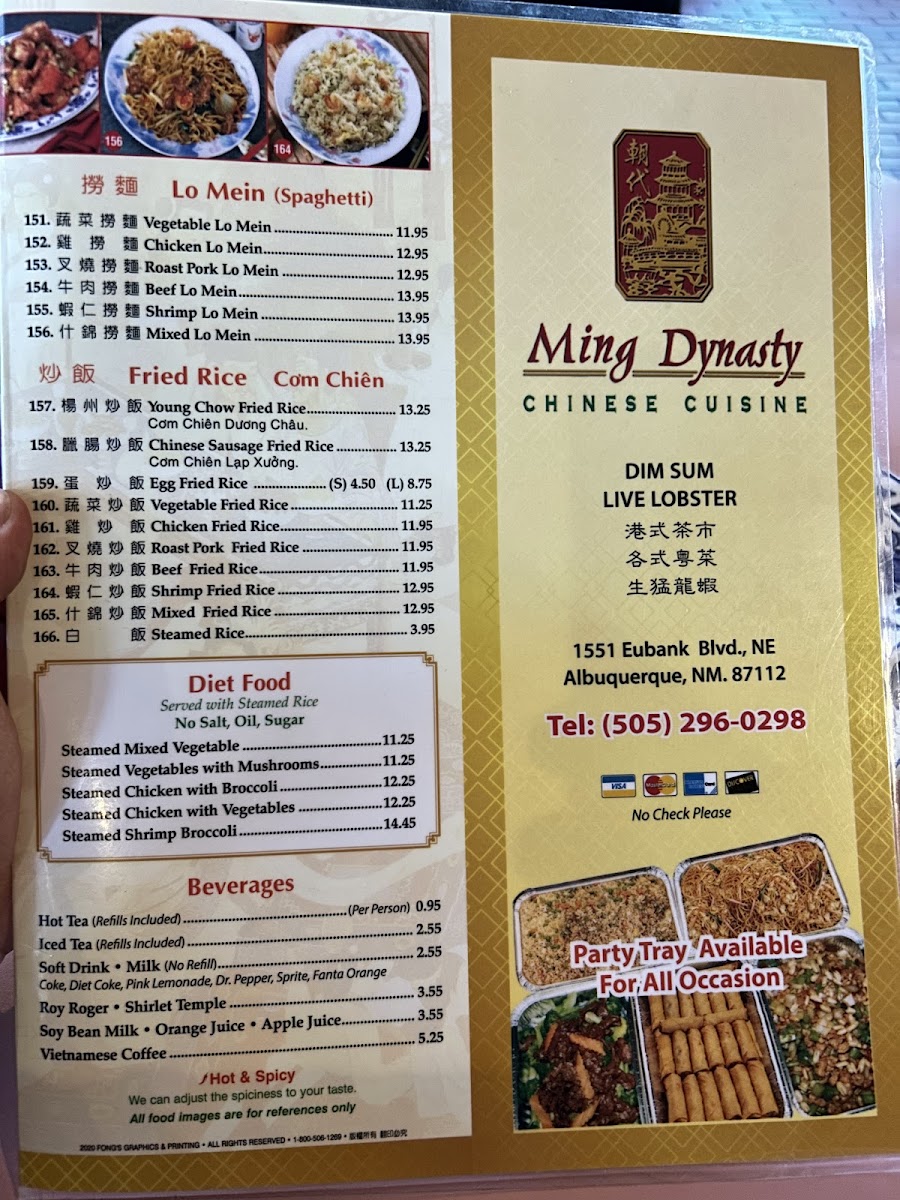 Welcome to Ming Dynasty, a culinary gem nestled in Albuquerque, NM, known for its authentic Cantonese cuisine. Each dish is a testament to tradition, featuring dim sum crafted from scratch with fresh, wholesome ingredients. The menu offers a delightful variety of options, from the indulgent Yang Chow fried rice to the tantalizing Kung Pao Chicken, ensuring a feast for every palate.
